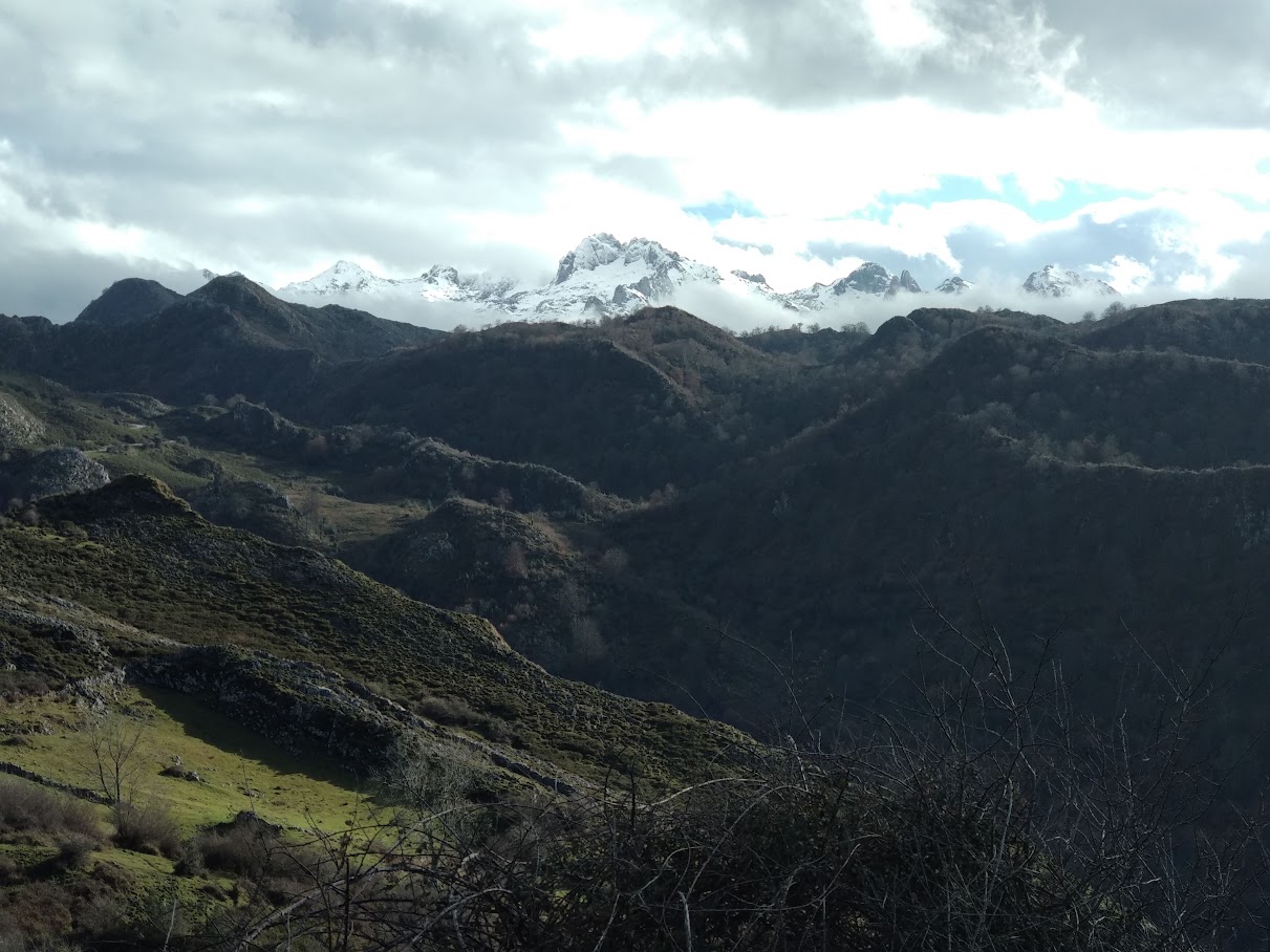 Fértiles vegas y fincas en el fondo de los valles, pintorescos pueblos con casitas, algunas de tejados negruzcos de pizarra, otras de térreas tejas, densos y antiguos bosques que se aferran a las inclinadas laderas (y que están habitados por diversos seres -algunos reales y otros mitológicos-), lejanas brañas ensoñadas, salpicadas de algunos teitos, afiladas y elegantes cumbres que pugnan por alcanzar los más altos techos verticales. Como las esbeltas torres de una catedral gótica, deseando alcanzar el cielo, sabiéndose poseedoras de la belleza inmortal de este templo natural.