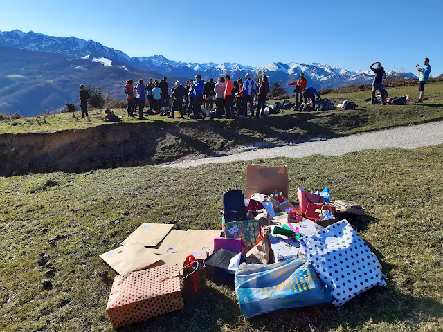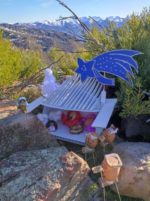 Decidimos subir al pico Biolosu de 1.451m para poner allí un belén de cumbres biodegradable y un tanto peculiar y especial como nosotros. Una especie de Palacio de Congresos de Calatrava como estructura, unos reyes con forma oval y hasta un pingüino... Sois grandes chicos y Javier más.