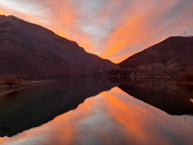 Atardece en el embalse de Rioseco, sobre las aguas del Nalón |