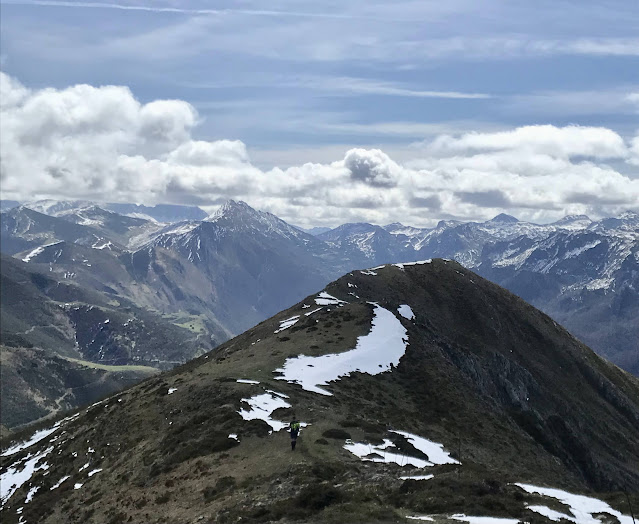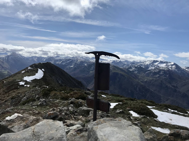 Finalmente alcanzamos la cumbre, el Michu se ubica justo en la confluencia con el concejo de Teverga y es una montaña modesta, de 1.765 metros que está lejos de ser abrupta ni espectacular pero ejerce de mirador hacia las cumbres más singulares de Somiedo como son el Cornón, Peña Orn z, los Bígaros, los Albos, Peña Calabazosa, las Morteras, Penouta, Muxivén, el Mocosu y, como ya es habitual... Nos saludan las Ubiñas tan majestuosas como siempre.