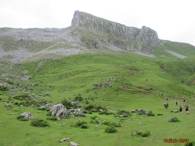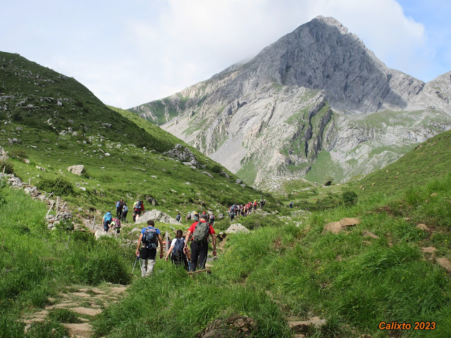 Mientras subo hacia Cerreos, contemplo como las nubes se enroscan en la cumbre de Ubiña y no doy un duro porque nuestros compañeros lo logren. Pero el viento es caprichoso y según van subiendo, las nubes también, y así nosotros a nuestra manera, y ellos a la suya, llegamos sendos grupos a sendas cumbres y nos deleitamos con las espectaculares vistas.